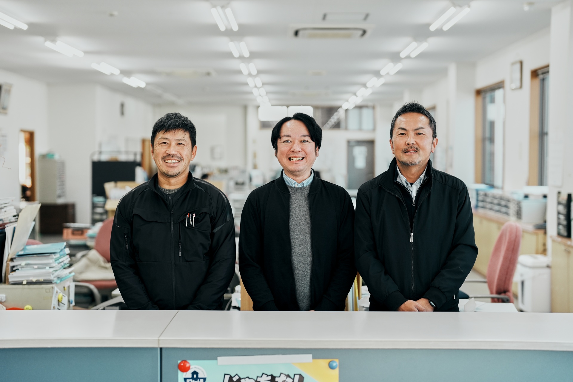 入社後は配送業務からスタートし、半年から1年を目安に営業へ移ります。配送業務を通して商品や仕事の流れ、お客様のことを把握します。配送する商品は石膏ボードやベニヤ板、カーペット、トイレ、給湯器などです。営業に異動した後は、上司や先輩スタッフに同行して業務の流れや提案方法について学びます。ベテランスタッフがしっかり教えますので未経験の方でもご安心ください。現在活躍しているスタッフの前職は、教習所の講師や八百屋の販売スタッフなど様々です。